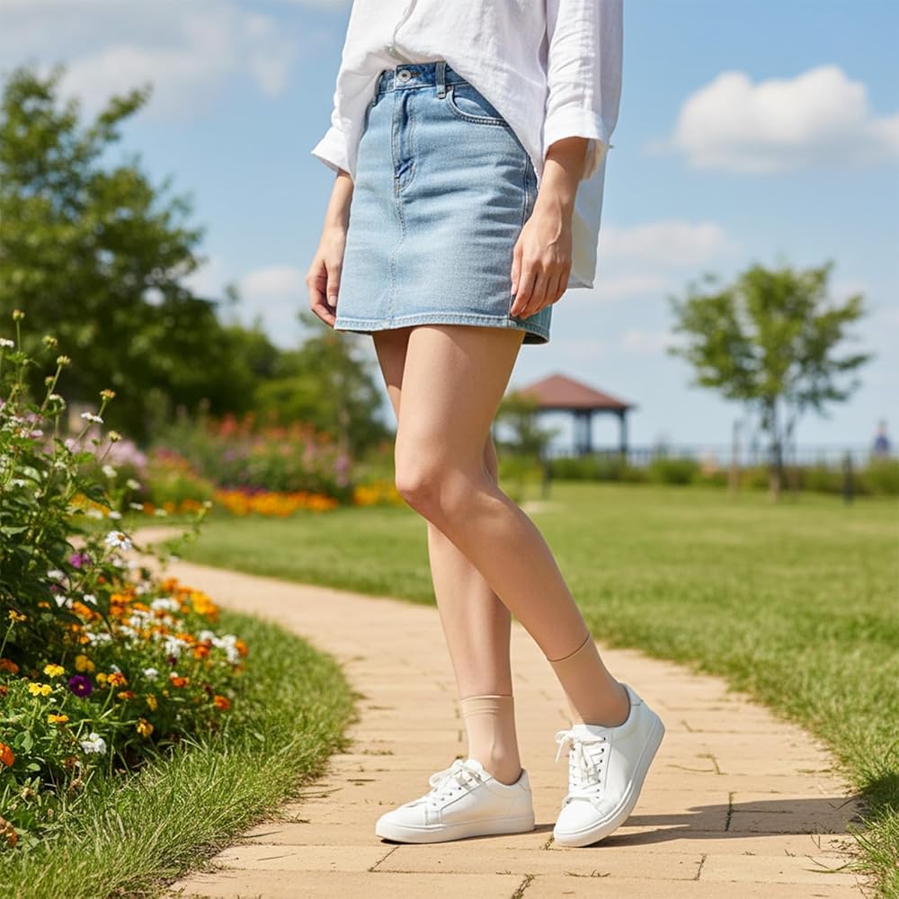 【Premium Materials】These sheer socks are made from a blend of nylon and spandex, resulting in a soft, smooth texture that conforms to the skin for comfortable wear. The lightweight material offers excellent breathability, keeping feet dry