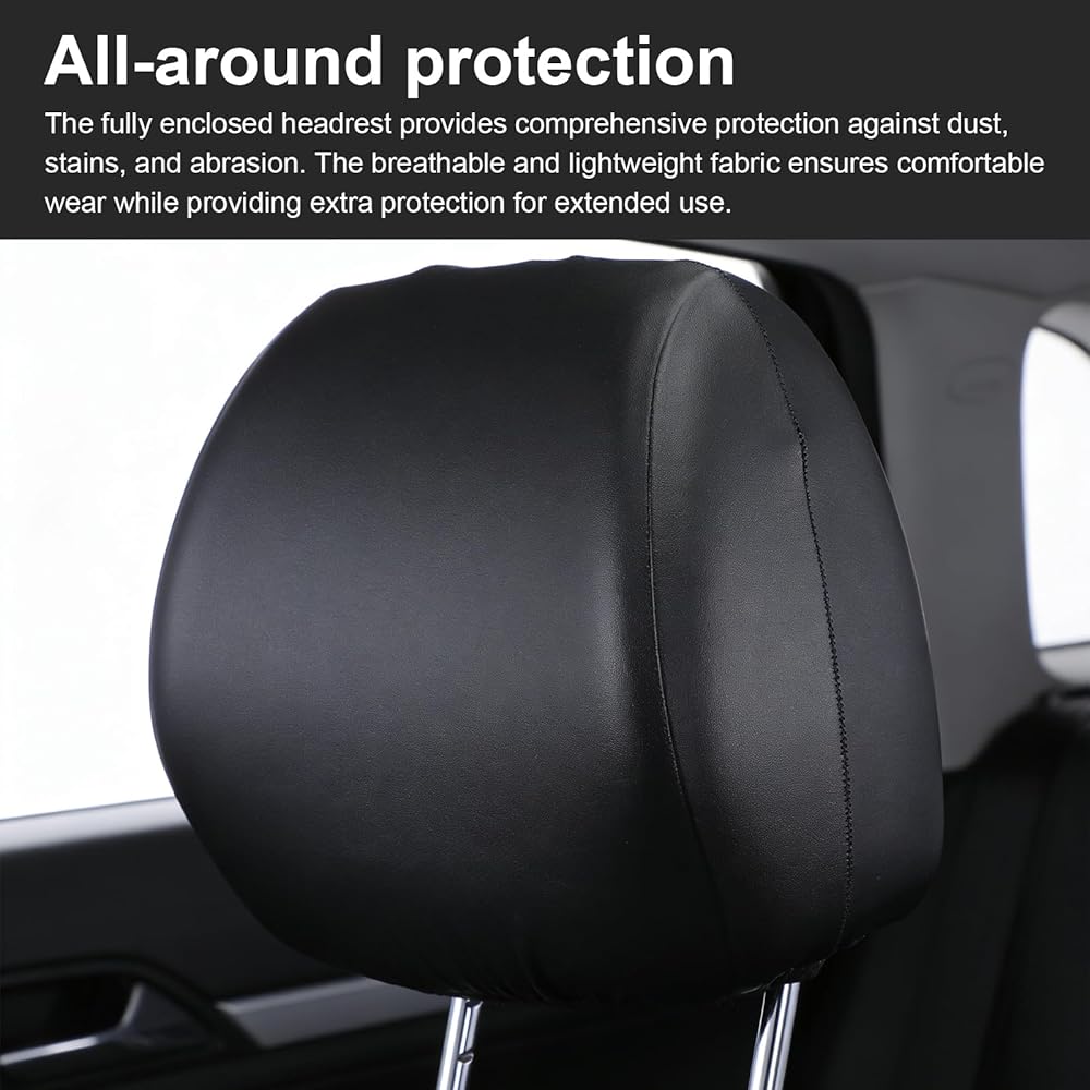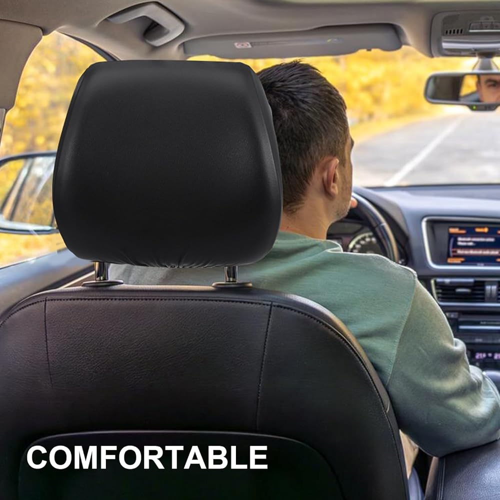 【Material & Durability】This headrest cover is constructed from flexible and wear-resistant PU leather, reinforced with polyester fiber for enhanced strength. The material is lightweight yet maintains its shape and elasticity even after prolonged use and frequent stretching, resisting deformation and loosening to ensure a long service life. The combination of PU and polyester fiber creates a durable barrier that withstands daily wear while remaining soft to the touch.