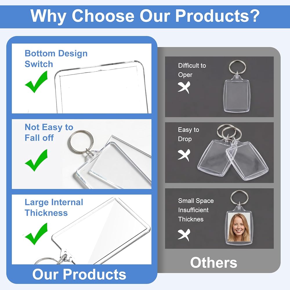【Robust Construction】Crafted from 90% high-quality acrylic and 10% metal, this picture keychain is built to last. The acrylic maintains photo clarity and vibrancy, while the metal split ring ensures secure attachment. Designed to withstand daily use, it protects your memories effectively