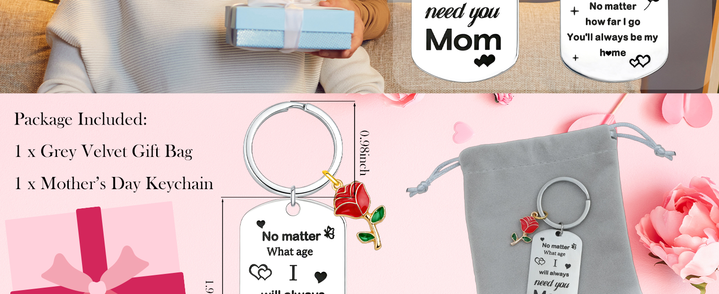Heartwarming Rose Flower Charm: The delicate rose charm symbolizes timeless love and gratitude, making it an ideal token of appreciation for Mom. Its timeless floral design appeals to all ages and complements any keyring collection
