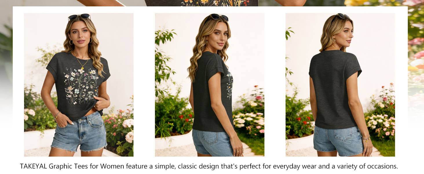 【Material】Made from a breathable and skin-friendly blend of 30% cotton, 65% polyester, and 5% spandex, this women's Cap Sleeve Graphic Tees and cap sleeve graphic tee offers lightweight softness with gentle stretch for all-day comfort and easy movement.