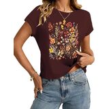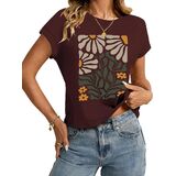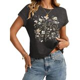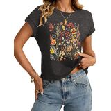 【Design】Featuring a classic cropped cut that hits at the waist, a boxy relaxed fit, and short rolled-up cap sleeves, this top showcases an abstract botanical art graphic with boho-inspired heritage cottagecore vibes for a clean yet artistic look.