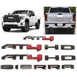 6Pcs AT4 HD Emblems Sierra Letters 3D Badge Side Door Rear Tailgate Sticker Decal NamePlate Compatible with 2019-2026 Sierra 2500HD 3500HD Canyon 85002068 (Matte Black)