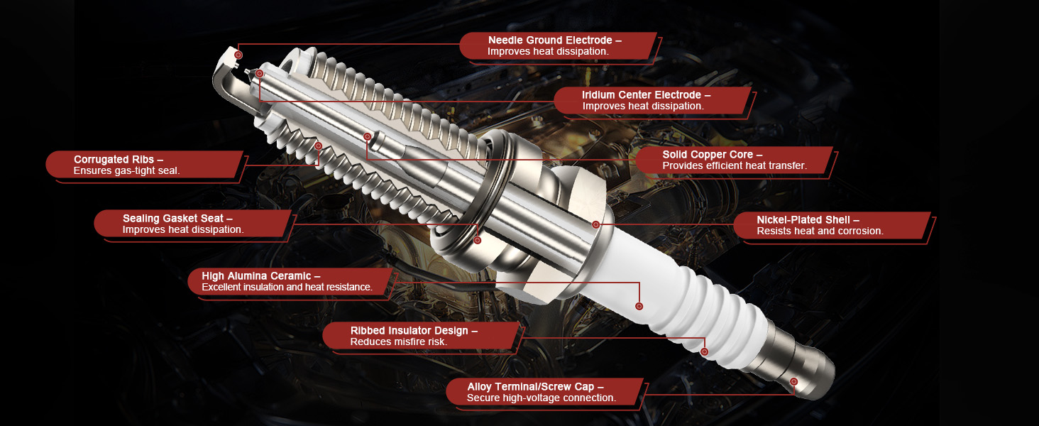 Our spark plugs undergo rigorous quality testing to effectively address a range of common ignition system issues,such as backfire,misfire,stall,vehicle shaking,engine jerking,unstable idling,and excessive fuel consumption,while also optimizing engine performance. By ensuring the stability and reliability of the spark plug's high-voltage output,our products deliver superior performance across the engine's entire speed range.