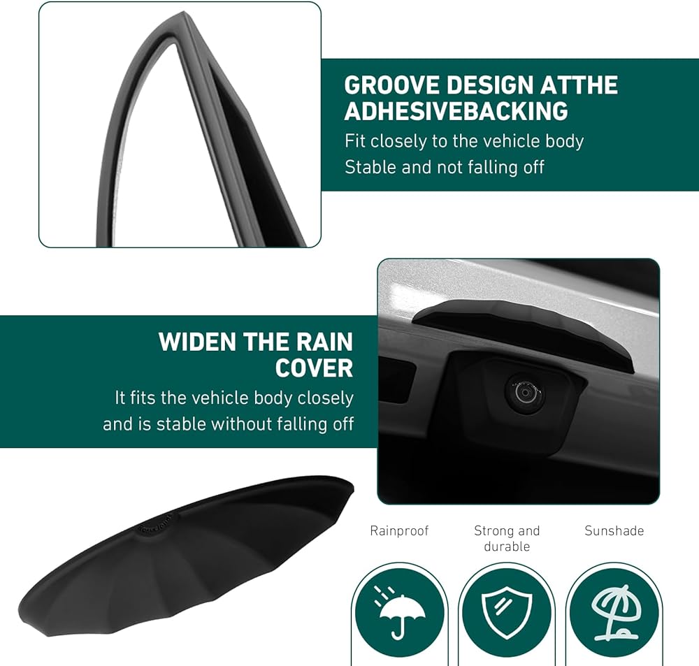 Innovative Design: Featuring a widened profile, the cover physically blocks most rain splashes from above or the sides. Its unique grooved backing allows the adhesive to conform to the camera housing's subtle curves, creating a tight, secure seal that prevents moisture intrusion. This ensures your vehicle's display receives unobstructed, high-quality video footage.