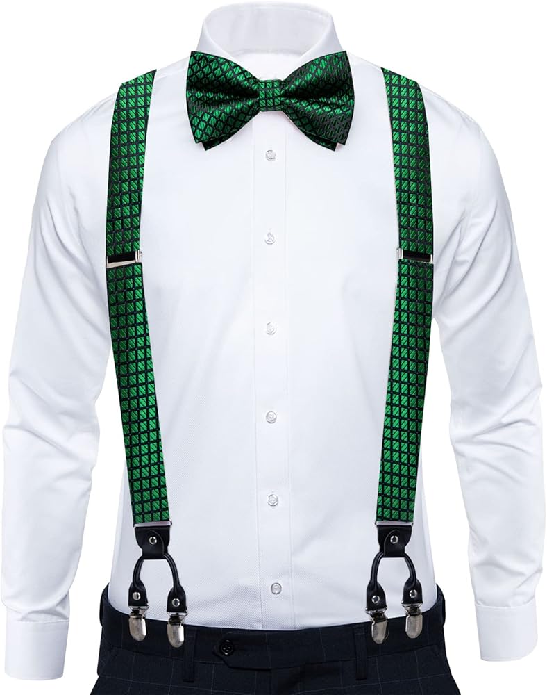 【Stylish Design】High quality suspenders,bowtie and handkerchief adopt the classic paisley,striped,plaid design, 1400 stitches jacquard woven craft,comfortable to wear, perfect match with any tuxedo trousers.