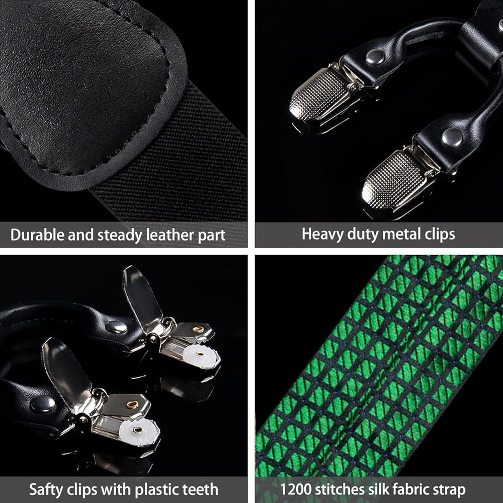 【Features】Our suspender with a Y-Back design, leather stitching, durable and stay steady; 6 strong metal clips, not easy to fall off; silk fabric with elastic belt, comfortable enough to wear all day.