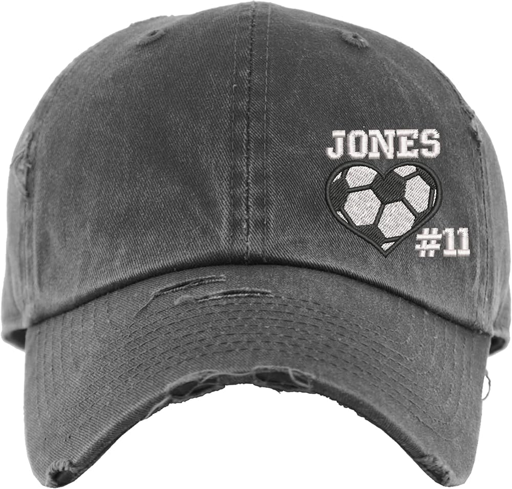 Soccer Heart Hat w/Custom Name and/or Number | Distressed Baseball Cap or Ponytail Hat | Personalized Soccer Gift