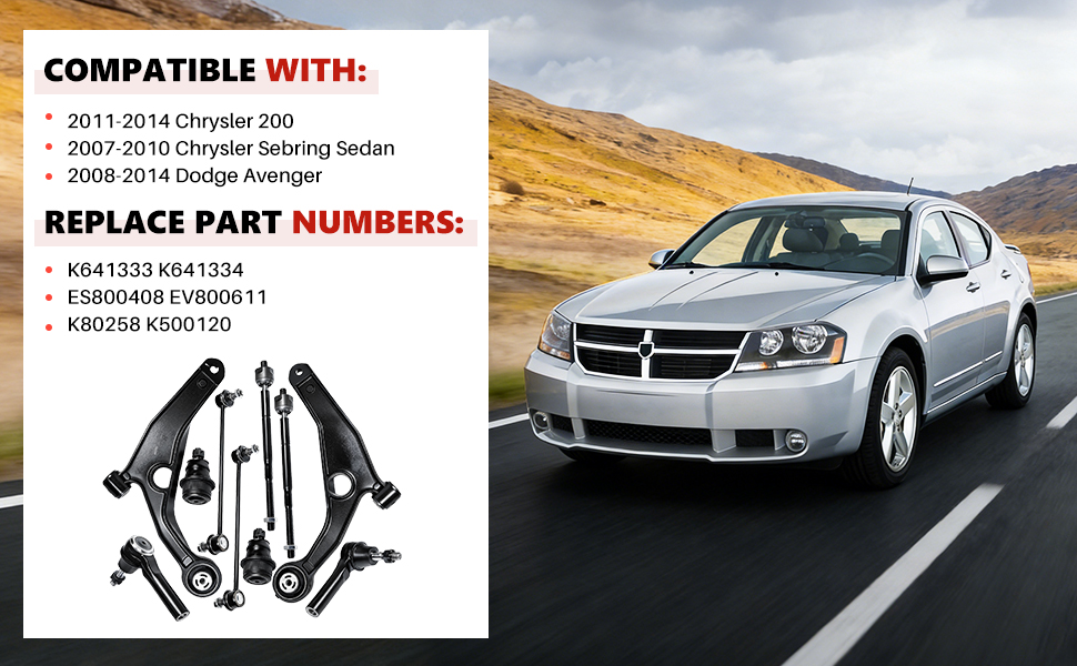 [Compatibility]: Replacement for 2011-2014 Chrysler 200, 2007-2010 Chrysler Sebring Sedan, 2008-2014 Dodge Avenger