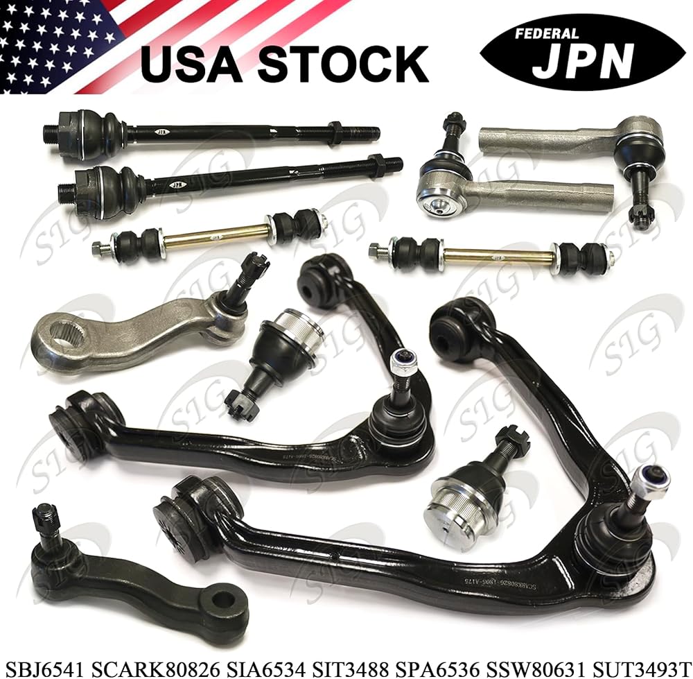 12PC Front Suspension Kit Front Upper Control Arm & Lower Ball Joint & Stabilizer Sway Bar Link Steering Inner & Outer Tie Rod End Pitman Idler Arm Compatible with 1999-2006 Chevy Silverado 1500 4WD