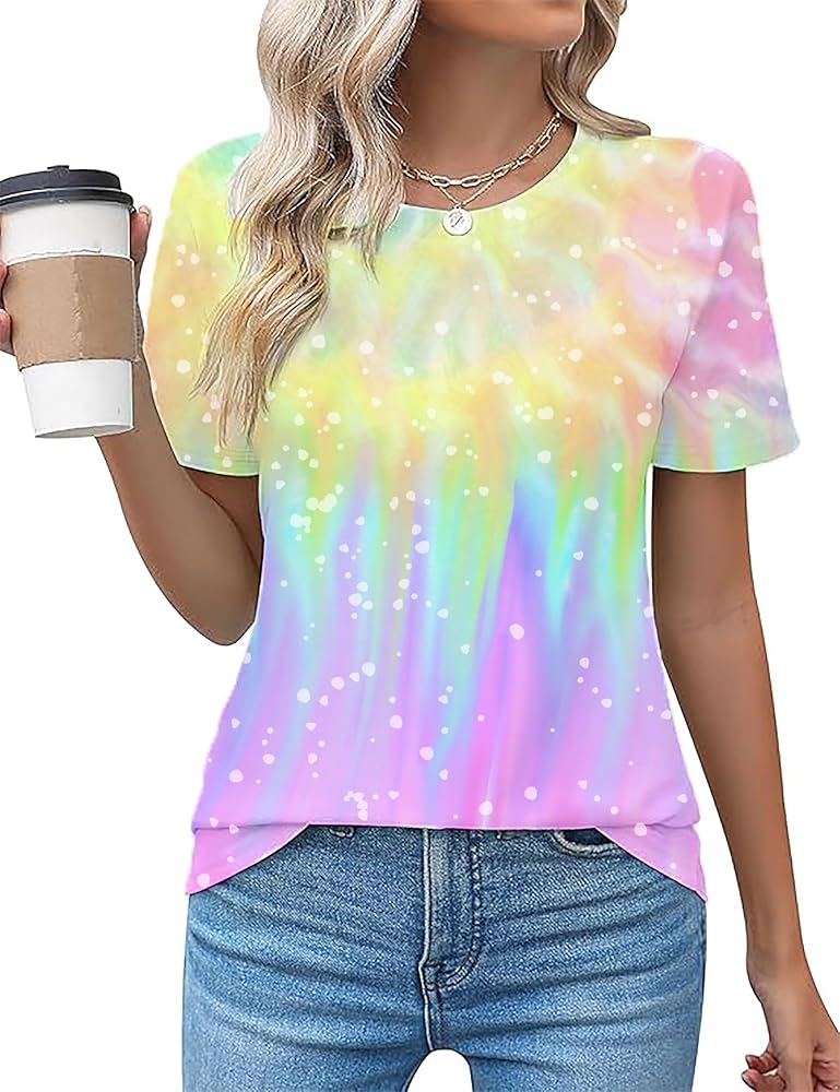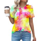 Retro Tie-Dye Design: Features a chic tie dye cut that elongates the neckline, paired with unique, colorful tie-dye patterns. This vintage-neon graphic tee offers a stylish, eye-catching look that stands out