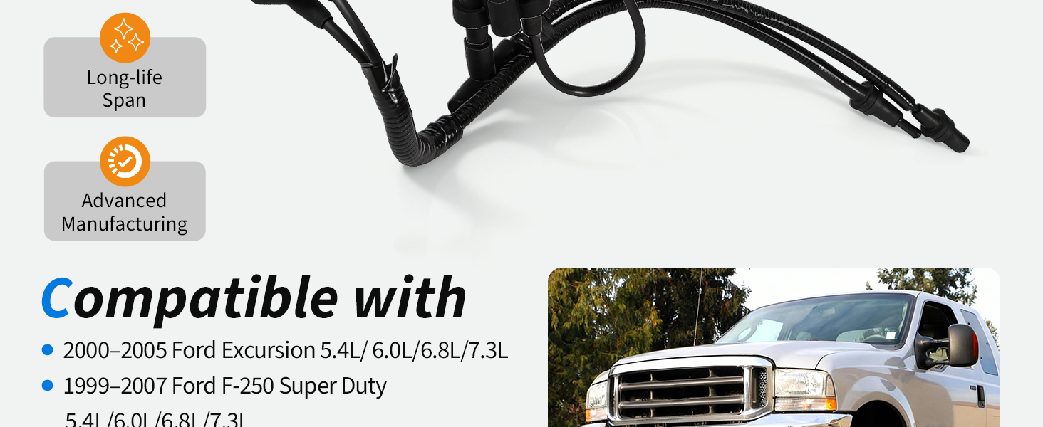 【Compatible with】Vacuum Tube fits for 2000–2005 Ford Excursion 5.4L 6.0L 6.8L 7.3L, 1999–2007 Ford F-250 Super Duty 5.4L 6.0L 6.8L 7.3L, 1999–2007 Ford F-350 Super Duty 5.4L 6.0L 6.8L 7.3L, 1999–2007 Ford F-450 Super Duty 6.0L 6.8L 7.3L, 1999–2007 Ford F-550 Super Duty 6.0L 6.8L 7.3L
