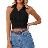 Features: This ribbed sleeveless tops for women features with collar v neck, crop, fitted, halter, button front design, the buttons can adjust the depth of the v-neck, showcasing different styles, perfect for a daily casual look