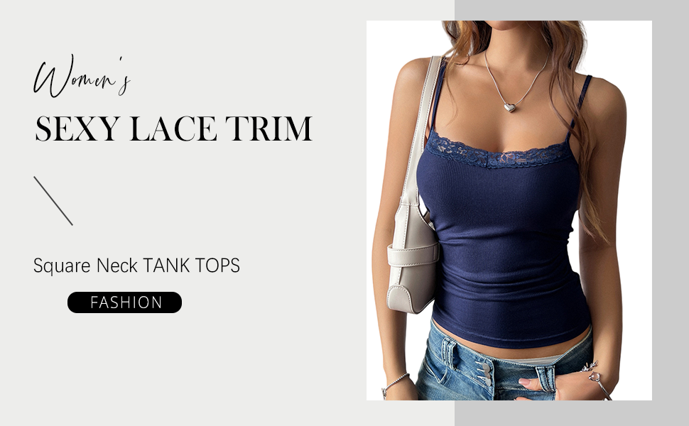 Design: A delicate lace trimmed neckline, spaghetti straps and a short silhouette are the highlights of this women's lace top. The ribbed fabric and lace trimmed neckline add a feminine touch
