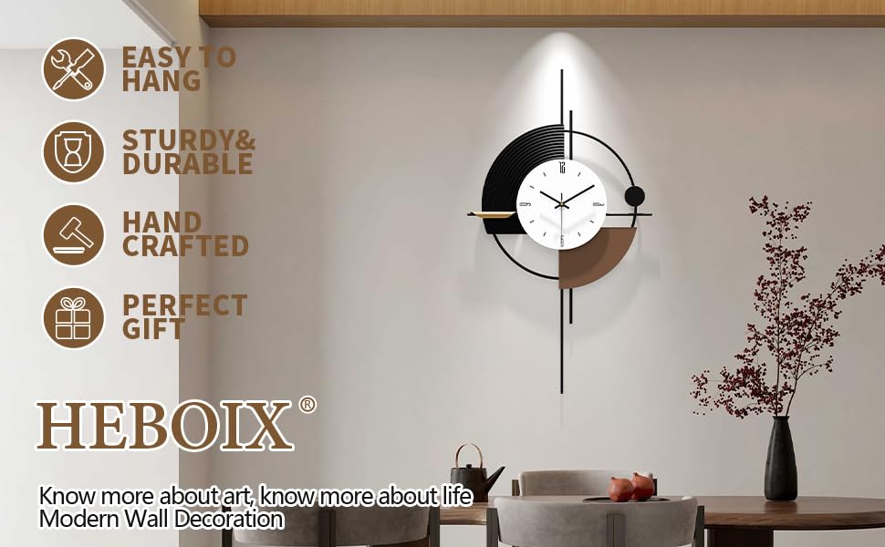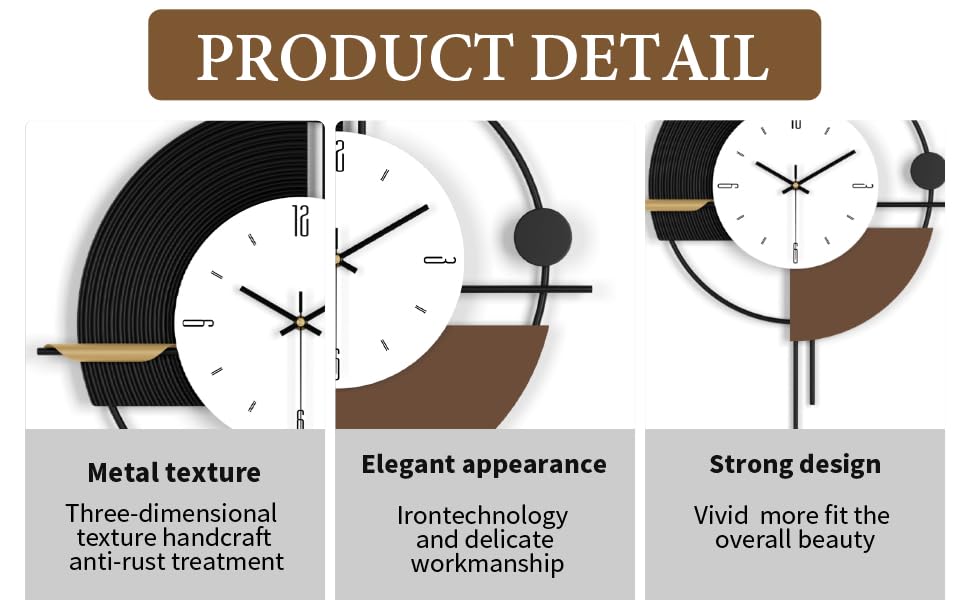 【Structure Design & Idea】- This decorative wall clock is made of quality metal iron frame and modern industrial combination, bringing you a different visual experience. Lightweight design is easy to install.