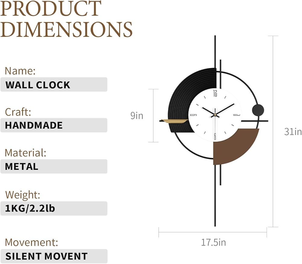 Modern Wall Clock for Living Room,Large Decorative Wall Clock,Digital Creative Silent Clock Battery Operated for Kitchen/Entryway/Bedroom/Office/Dinning Room Metal Wall Decor 18"X31"