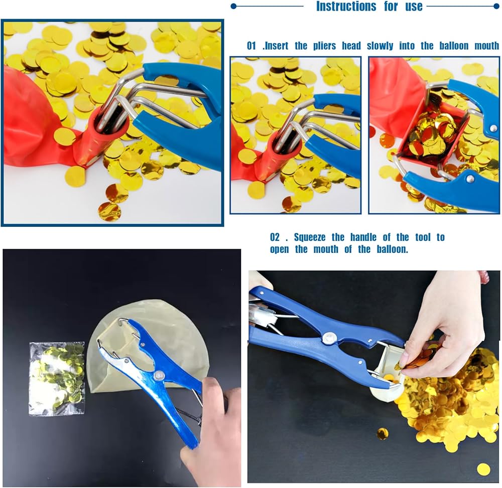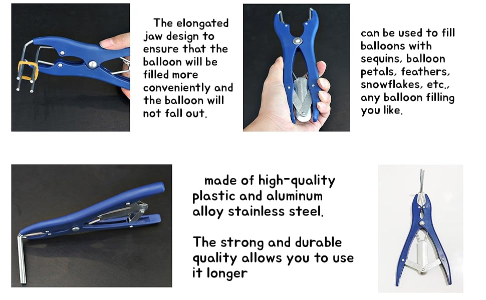 【User-Friendly Design】 The four-way spring-loaded clamp help you expand the balloon inflatable mouth and fill with sequins and colored papers to help you load more conveniently; At the same time, the balloon filler machine stuffing also has an extended clamp mouth, which can be operated with one hand to facilitate filling.