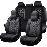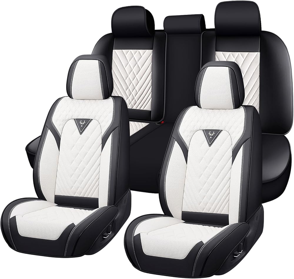 HIGH QUALITY MATERIAL: The material of our car seat cover is made of high-quality leather, with small air holes, uniform and tight distribution, high grade, texture and comfort.The leather surface is perforated to increase breathability and avoid stuffiness, making the seat cover usable in all seasons.