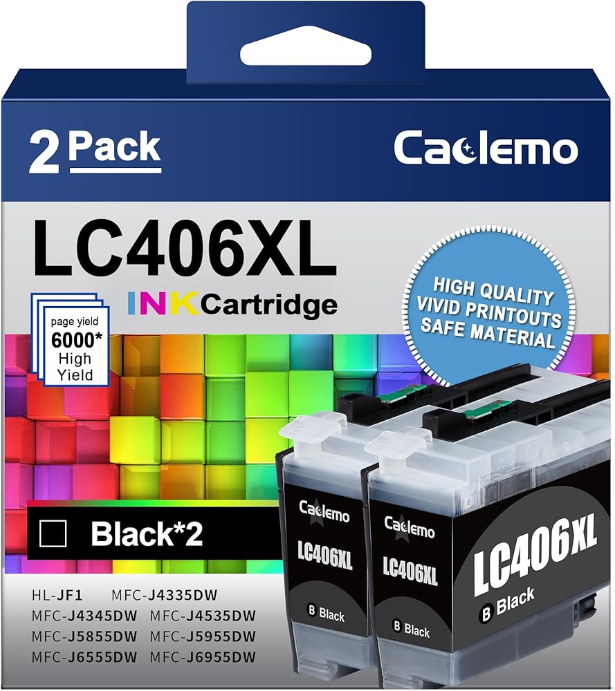 【Package Contents】LC406XL Ink Cartridges for Brother Printer includes 2 Black LC406XL LC406 XL LC406XLBK Ink Cartridge