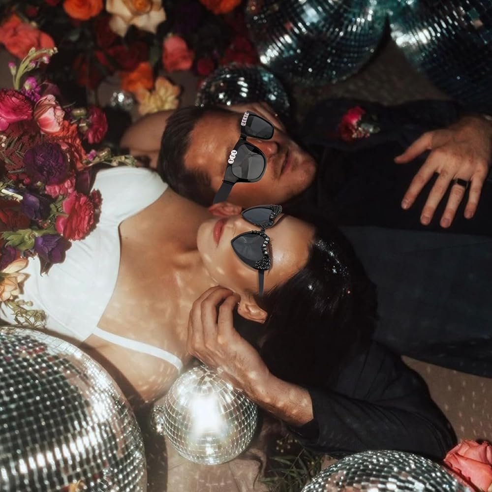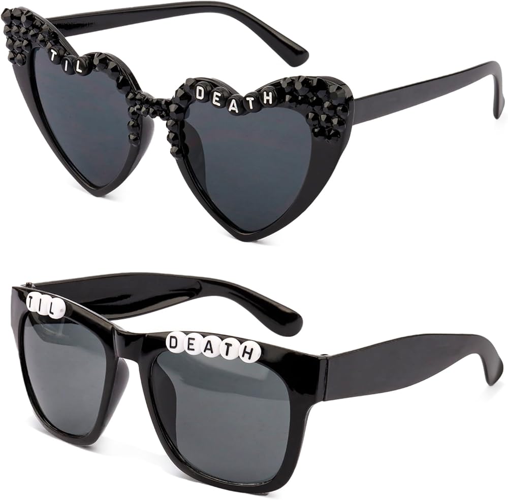 CUBACO Wedding Sunglasses Bride and Groom Sunglasses Till Death Do US Part Decor Just Married Decorations Gothic Wedding Engagement Gifts for Couples Halloween