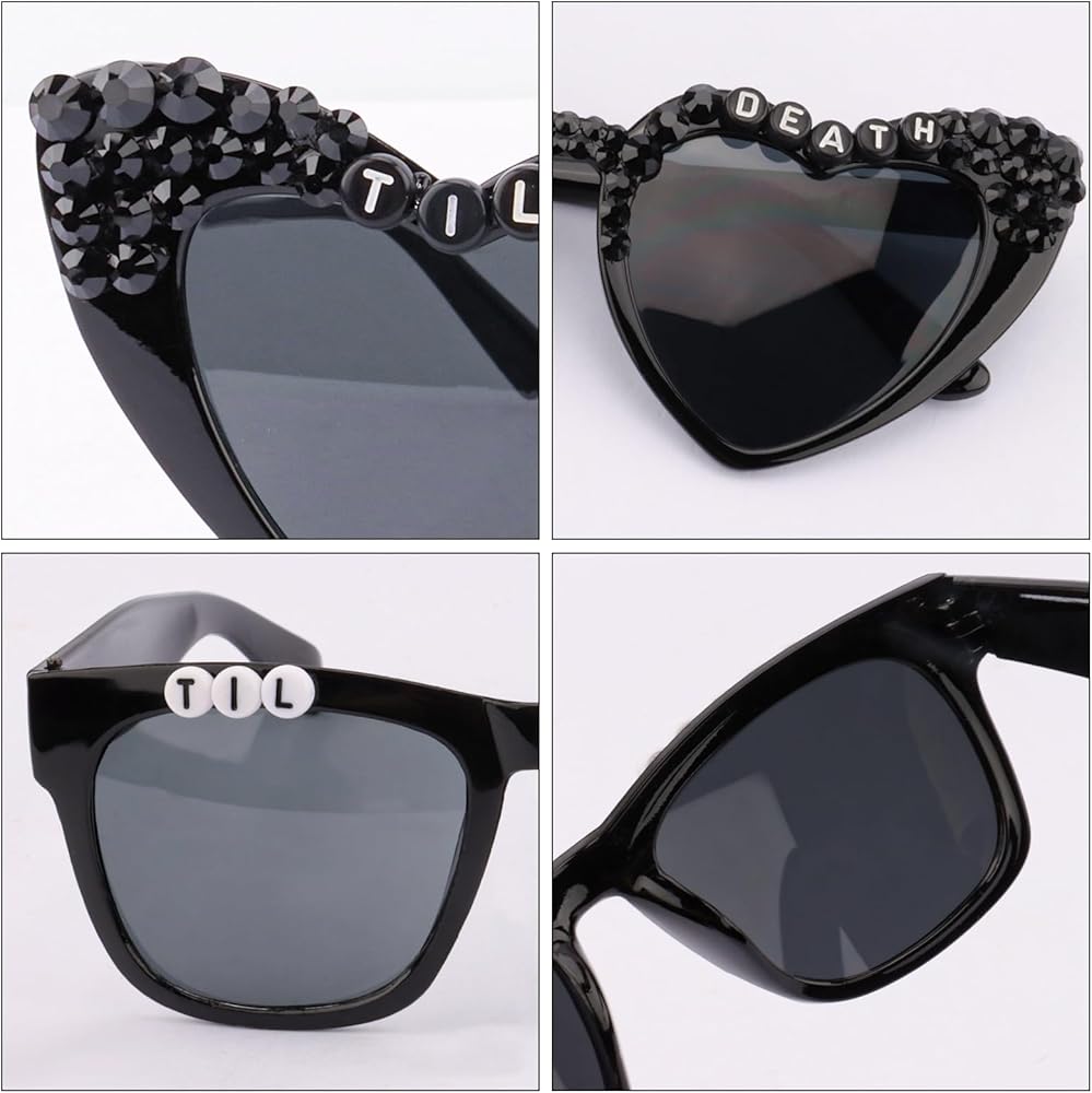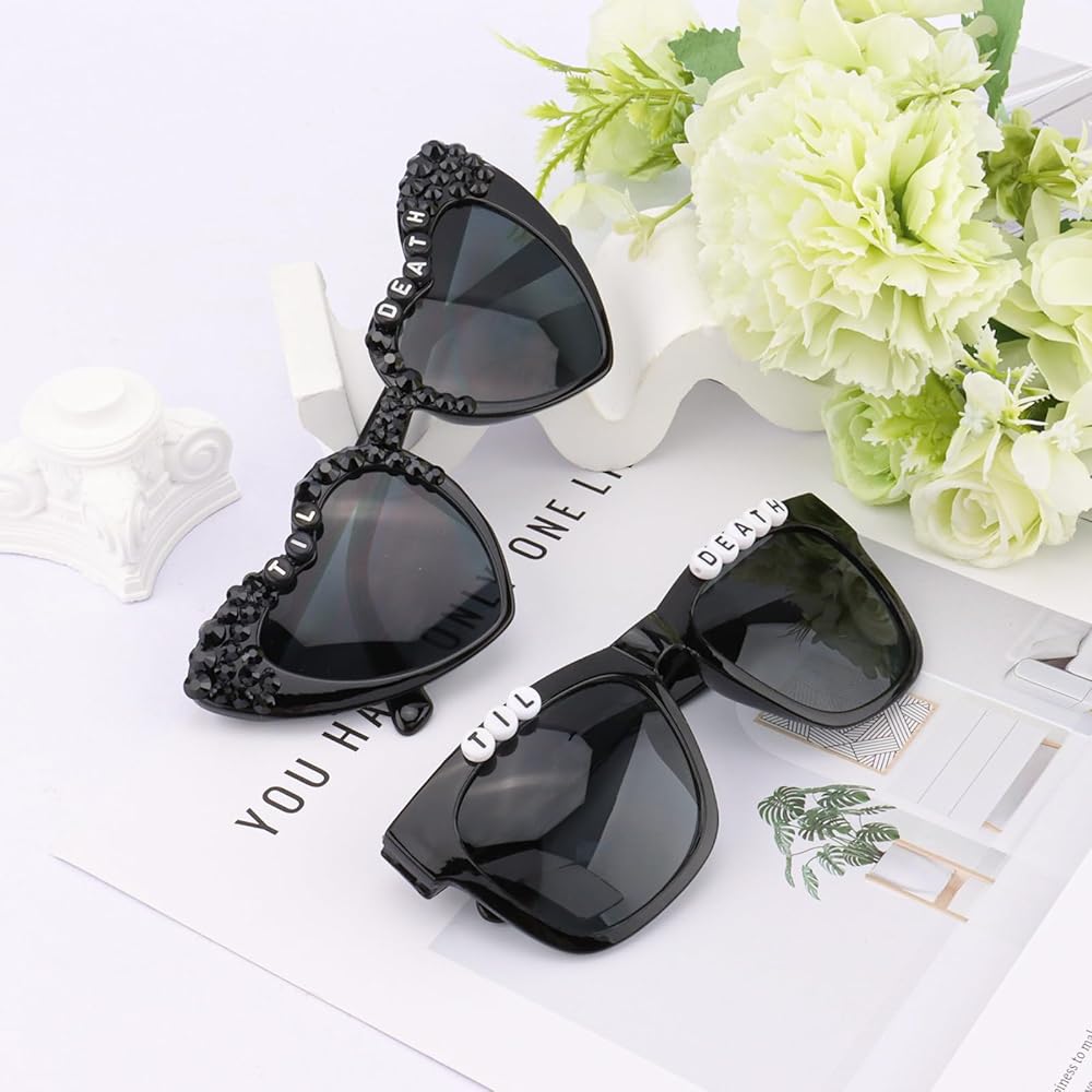 1. Funny Gothic Bride Sunglasses – Til Death Do Us Part Unique bride sunglasses featuring bold “till death do us part” lettering with a spooky vibe—perfect for gothic gifts, spooky gifts, horror valentines gifts, spooky valentines, funny valentines, corpse bride gifts, skeleton, skull decor, and skull gifts for men or women.