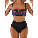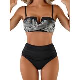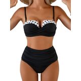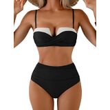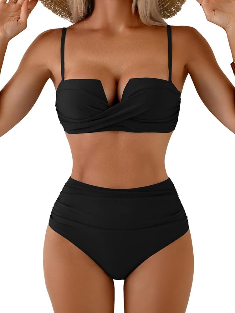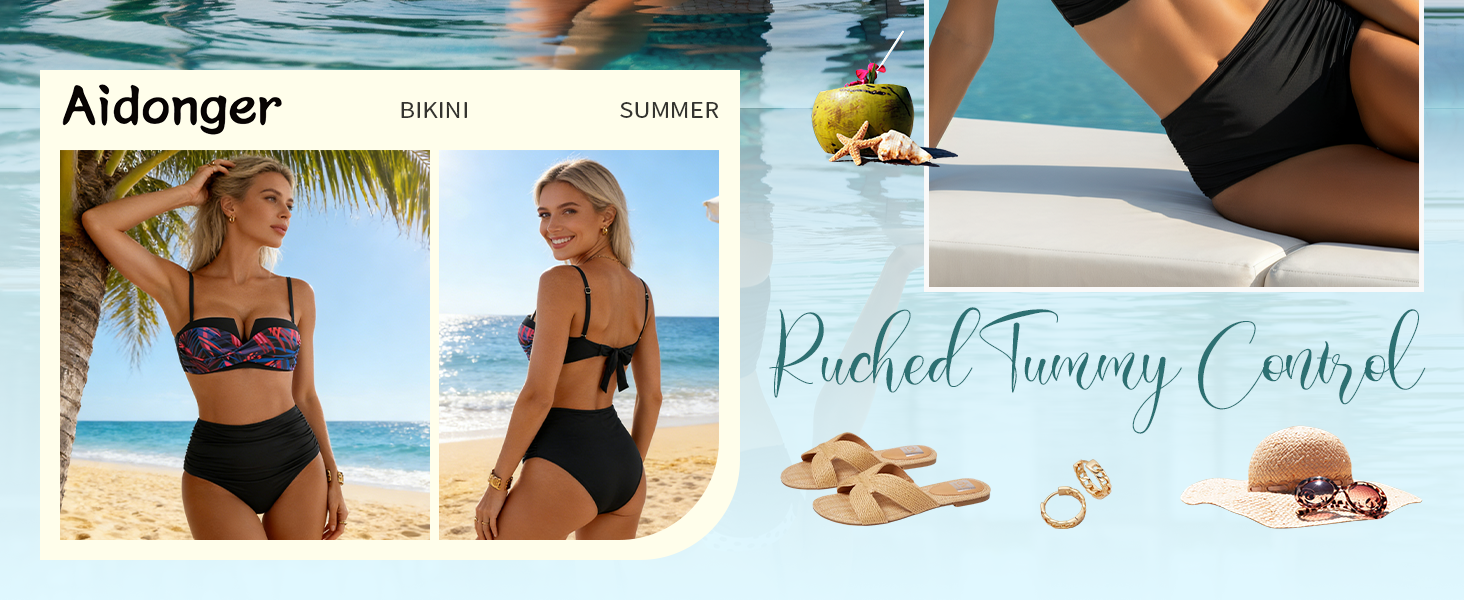 Tummy Control: The high-waisted bikini bottom features slimming ruched fabric that smooths and shapes your midsection into a flattering silhouette for a confident beach look