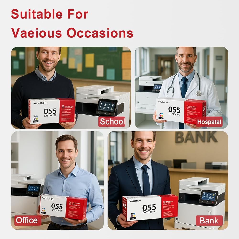 What's in the package: 4-Pack 055 Toner Cartridges (1BK+1C+1M+1Y)