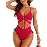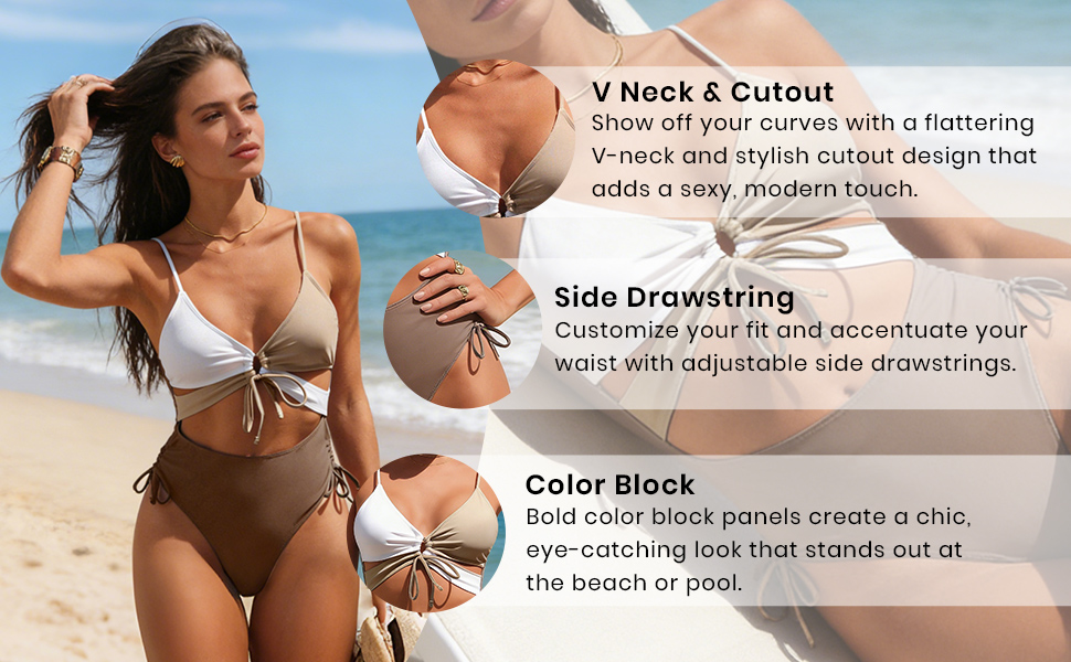 V Neck Cutout Design: This sexy one piece bathing suit features a V-neck with a front tie cutout and bold color block design, creating a flattering, eye-catching look that highlights your curves