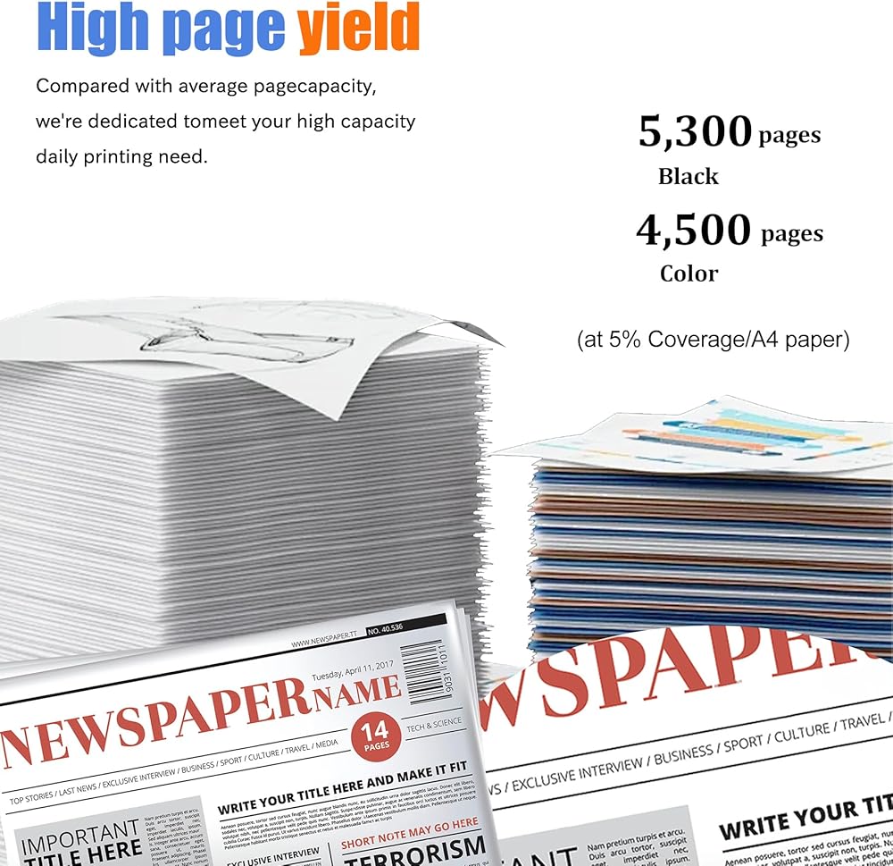 High yield up to 5,300 pages per CLT-K508L Black Toner Cartridge. (at 5% coverage Letter A4);High yield up to 4,500 pages perCLT-508L C/M/Y Toner Cartridge. (at 5% coverage Letter A4)