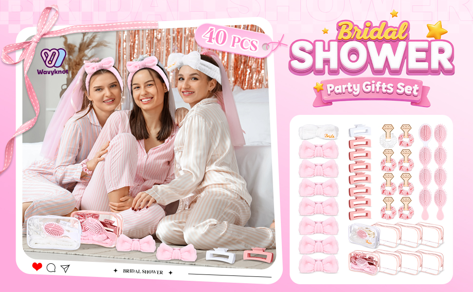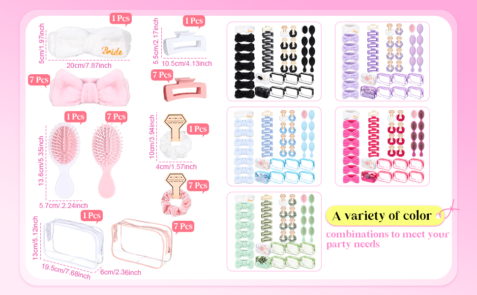 Size Information: bow headband is about 20 x 5 cm/ 7.87 x 1.97 inches, square clip is about 10.5 x 5.5 cm/ 4.13 x 2.17 inches, mini hair comb is about 13.6 x 5.7 cm/ 5.35 x 2.24 inches, makeup bag is about 19.5 x 13 x 6 cm/ 7.68 x 5.12 x 2.36 inches, scrunchies is about 10 x 4cm/ 3.94 x 1.57 inches; This set is designed to celebrate your bridal party in style, with hair accessories that are both stylish and practical; These bachelorette favors make a fun and meaningful keepsake