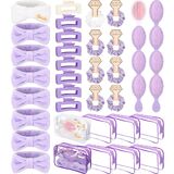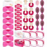 Bachelorette Themed Party Favor Set: each set includes 8 square hair clips, 8 hair ring with themed paper cards, 8 bow hairbands, 8 mini hair combs and 8 clear makeup bags, this stylish set is carefully crafted with complementary colors and patterns, making it the perfect addition to your bachelorette decorations and bridesmaids gift bags