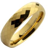 This glistening gold plated diamond shaped Faceted Honeycomb pattern adds to the beauty of this Tungsten Carbide ring. A perfect fit for use as a wedding band or casual wear. Scratch resistant. Since these rings are custom engraved to each buyer's specifications, all sales on custom designed rings are final. Please make sure the size you select is accurate and the preview is to your satisfaction before submitting. We do not offer exchanges or refunds on these products.