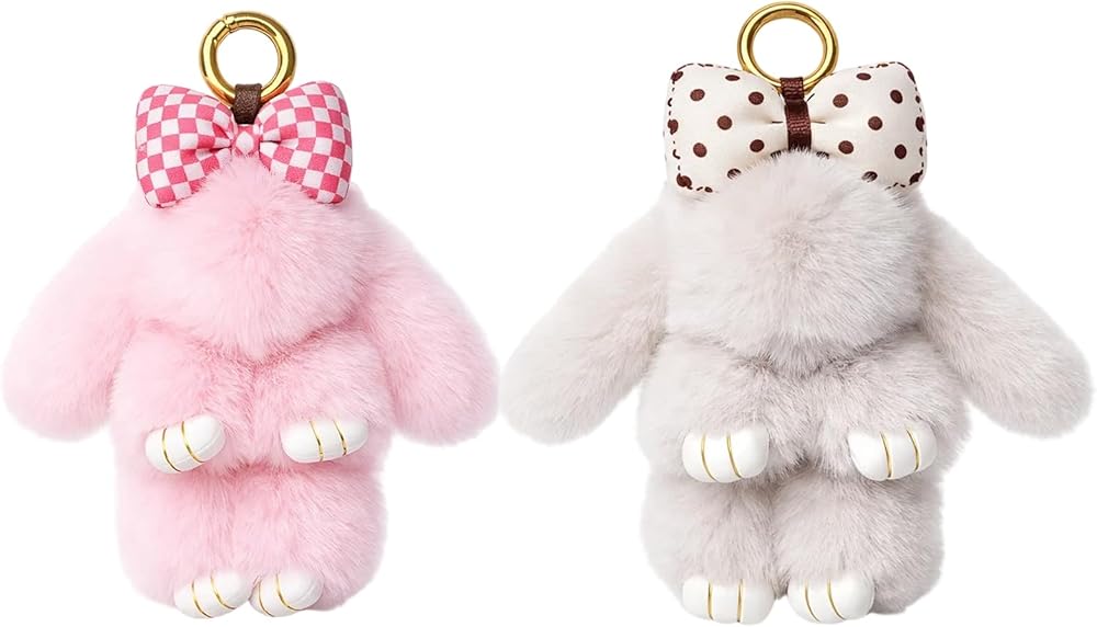 Convenient Two-Pack Set: Includes two bunny keychains in complementary pink and gray colors; The consistent size and quality ensure matching aesthetics; The practical set offers multiple styling options and sharing possibilities