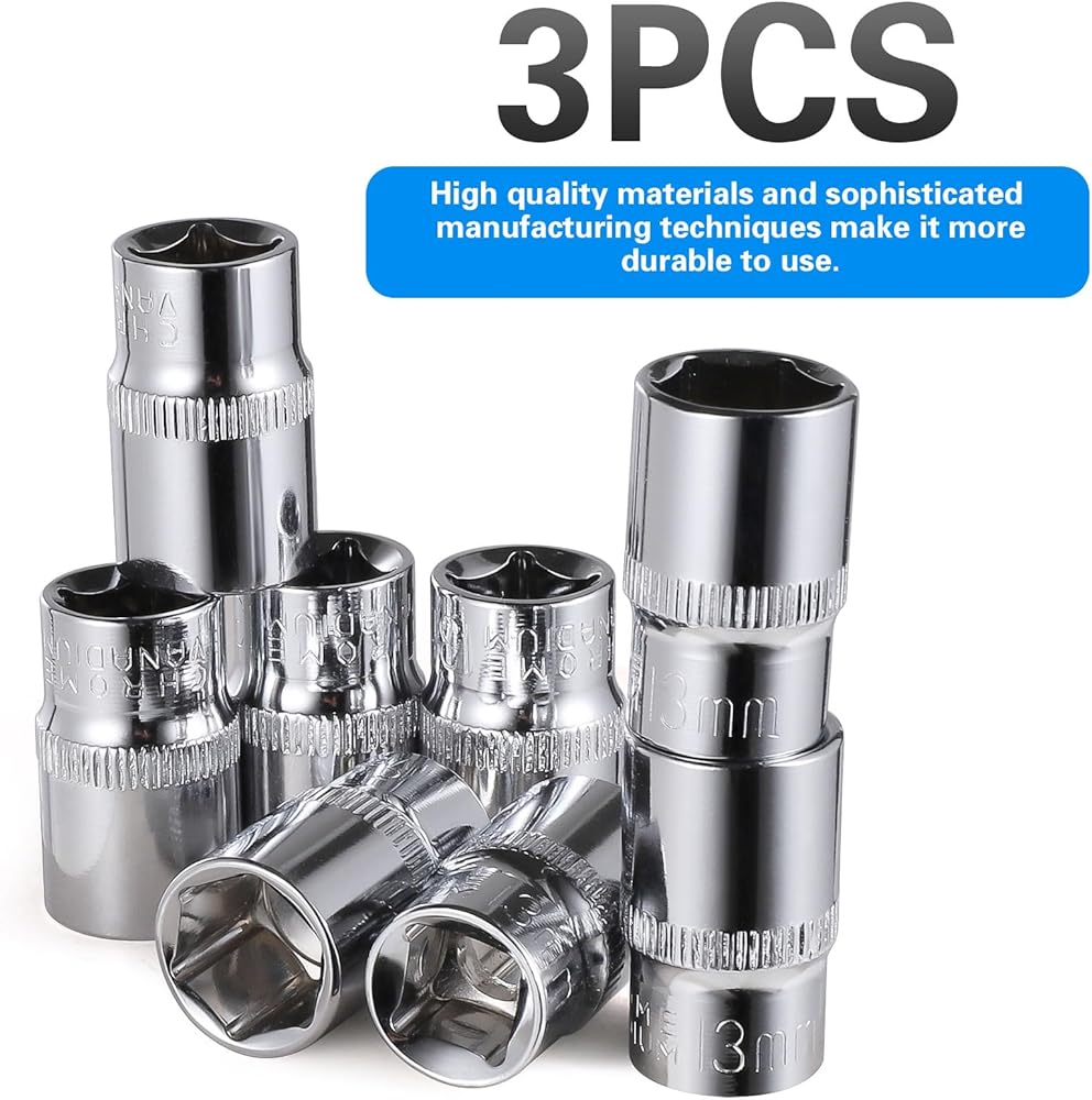 【Set Includes】 8 pieces of 6 points 13mm shallow sockets with 3/8-inch drive, compatible with standard ratchets and tools.
