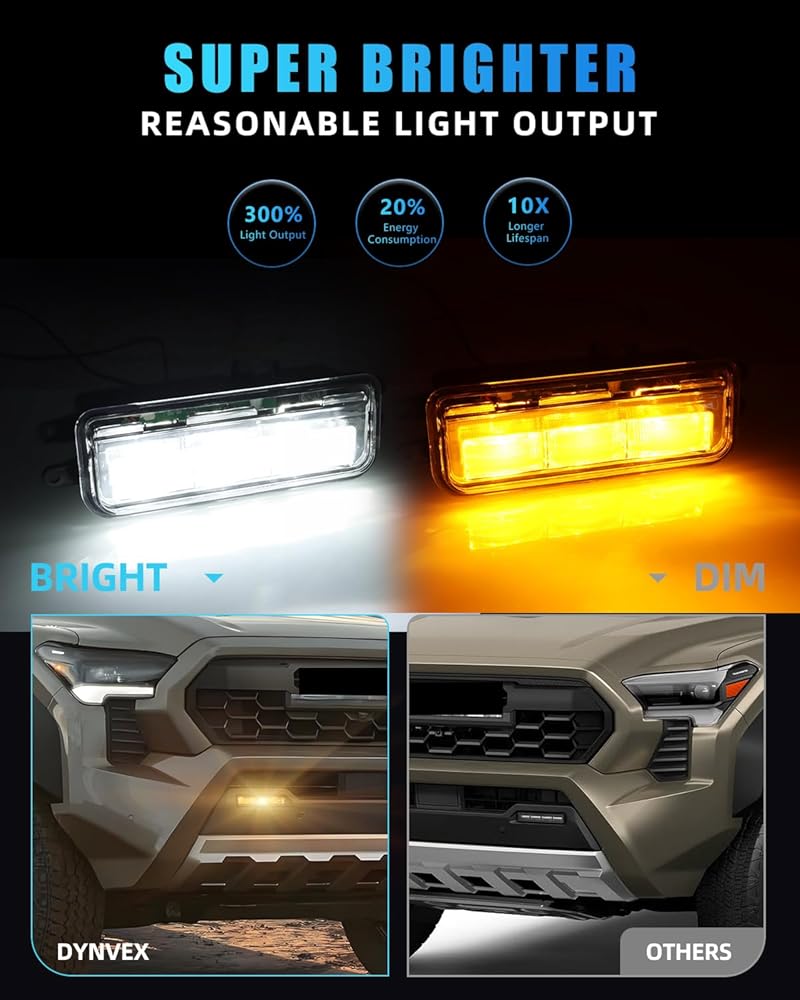 【1:1 Perfect Fitment】Fit for 2024-2025 Tacoma Extended Cab 2-Door Crew Cab 4-Door; Tundra 2022-2024, the LED fog lights flawlessly replace OEM parts: 812100C050/ 812200C040/ TO2593146/ TO2592146. With a perfect size that matches the original car, won't add any extra burden. Not only elevate the grade of your vehicle and look more fashionable than ever before but also improve your visibility and safety on the road effortlessly. Verify your vehicle's year and model for a seamless upgrade.