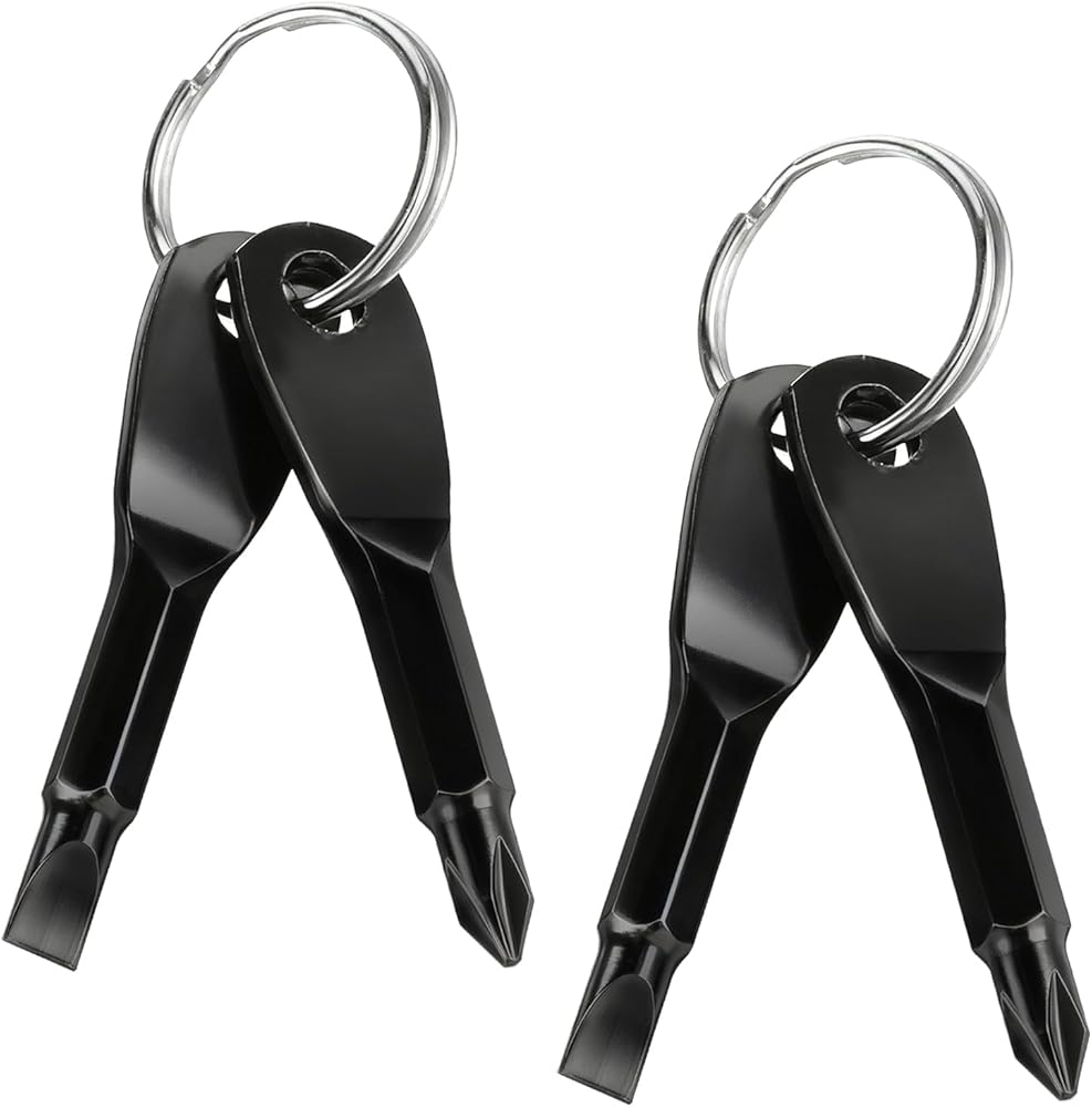 2 Pcs 4-in-1 Keychain Screwdriver Set, Multi-functional Cool Gadgets Tools with Cross Recess and Slotted, Screwdriver Keychain Pocket Repair Tool, Small Gift for Men Husband Dad Boyfriend