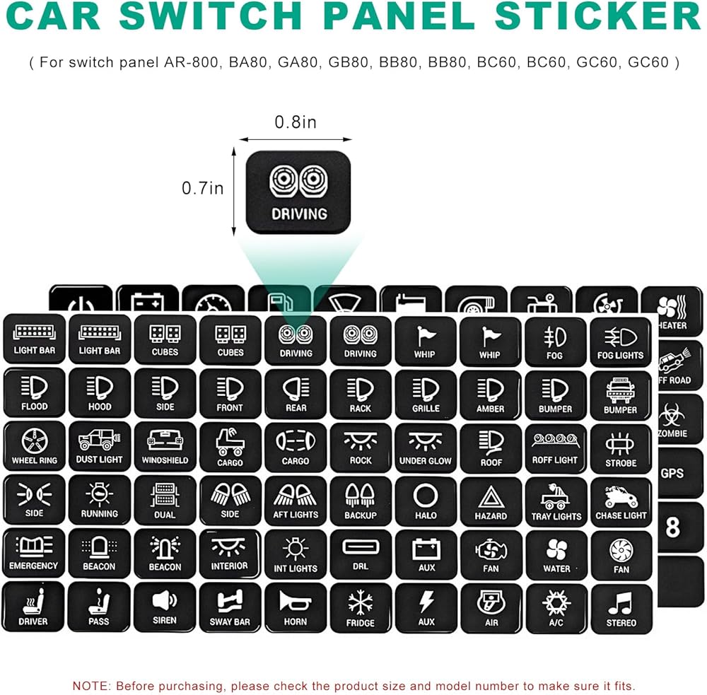 Wider Application: Our car dashboard button decals are suitable for control buttons on dashboards, rocker switches, circuit panels, horns, and so on. They are universally applicable to control switch panels for cars, boats, trucks, caravans and other vehicles