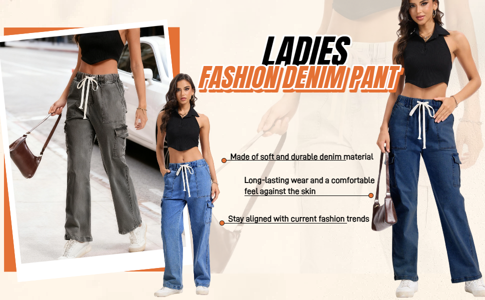 Design:Women mid rise jeans for women. Stretchy material for cozy wear Classic pockets design. Drawstring dressing is more convenient Multi-pocket design and large pocket capacity. The unique workwear design is more fashionable ,suitable for everyday wear/casual/dailylook/beach/outdoor/work/school/home/lounge/shopping/dating/vacation/ holiday/party.etc. Suitable for matching with navel tops, short sleeves,T-shirts,sweatshirts,etc.