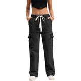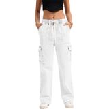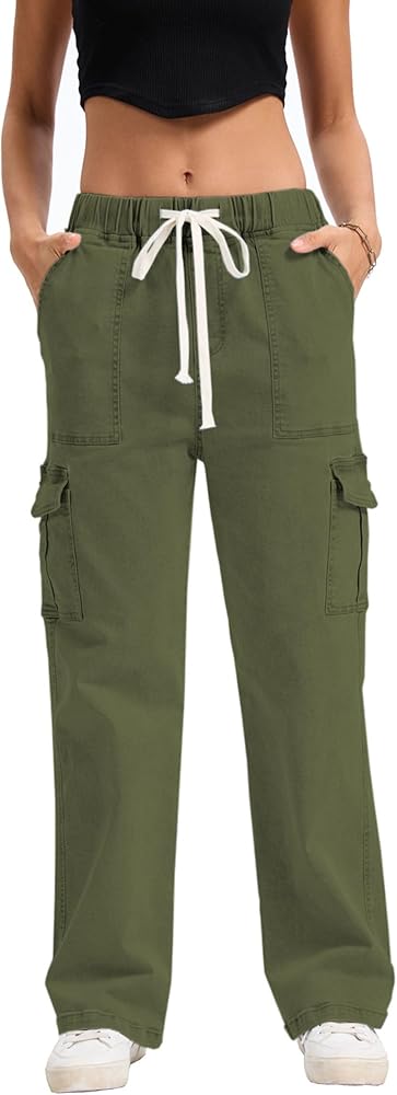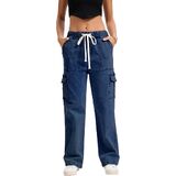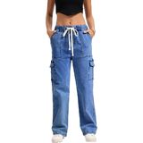 Mid Rise Cargo Jeans Women Elastic Waist Stretch Wide Leg Denim Pants with Pockets Multistyle Straight Leg Denim Pants