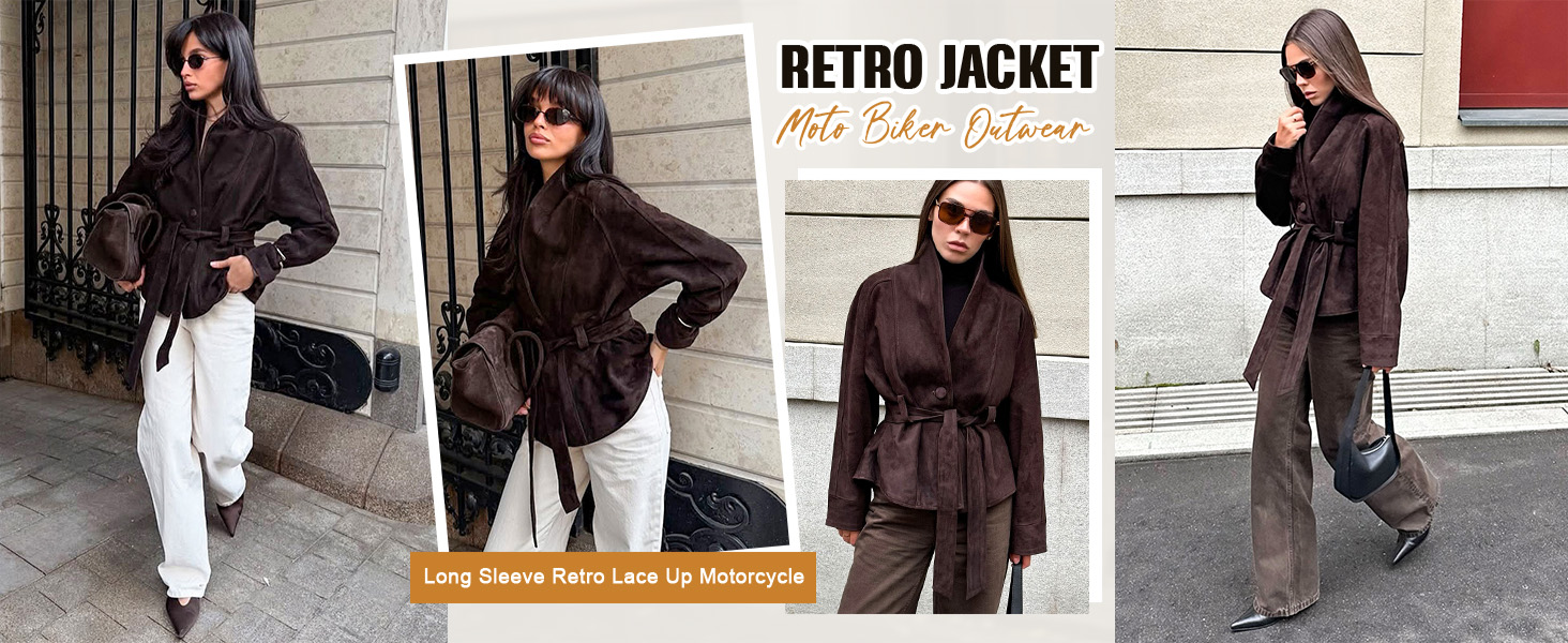 Features: Women Suede Retro jacket, Long sleeve, Oversized, Faux Leather Lace Up Jackets, Motorcycle Jacket, Fall Outfits, Y2k Fashion, Trendy Clothes, Punk Coat, Moto Biker Outwear, Bomber jacket women. This jacket is a must have addition in your wardrobe in this fall and winter.