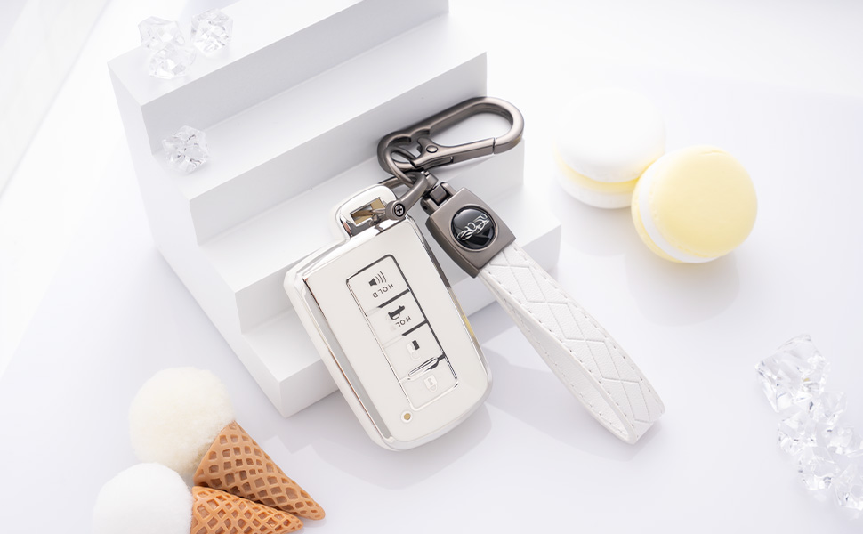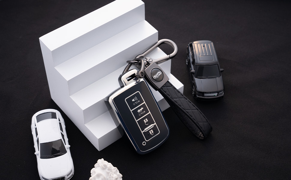 【Premium Material】The key fob case is made with Premium Soft TPU,comfortable and soft, excellent touch feeling, looks good. Super thin, fits like a glove. Besides, the genuine lanyard and shiny zinc alloy car keys keychain could prevent from losing while you take along.