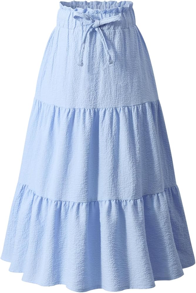 CHARMING BOHO TIERED DESIGN: Embrace a beautiful bohemian vibe with this tiered maxi skirt. Its flowy A-line silhouette with multiple ruffled layers creates graceful movement with every step. Crafted from a soft, lightweight, and breathable textured fabric, it keeps her comfortable and chic from sunny days to cool evenings.