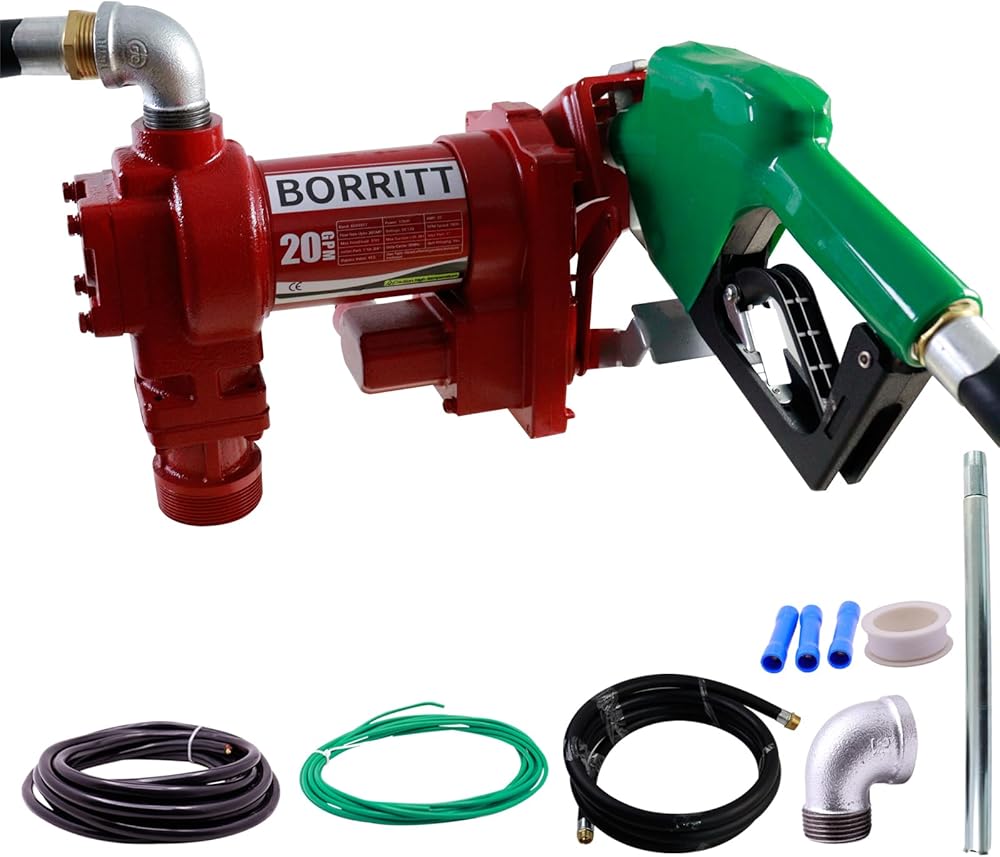 High Flow Rate High Flow Rate The BORRITT fuel transfer pump, coupled with an Automatic Nozzle, delivers an industry-standard flow rate of up to 20 gallons per minute (GPM). This ensures swift and efficient fueling, catering to high-demand environments.