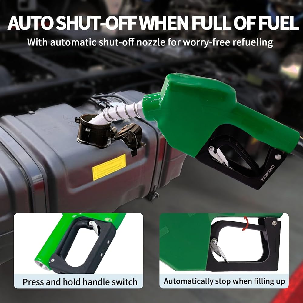 Fuel Transfer Pump 12 Volt 20 GPM High Flow,w/Automatic Nozzle Green,DC Fuel Pump,Cast Iron Gas Heavy Duty Transfer Pump for Gasoline,Diesel, Kerosene,Ethanol Blends,Methanol Blends,Biodiesel
