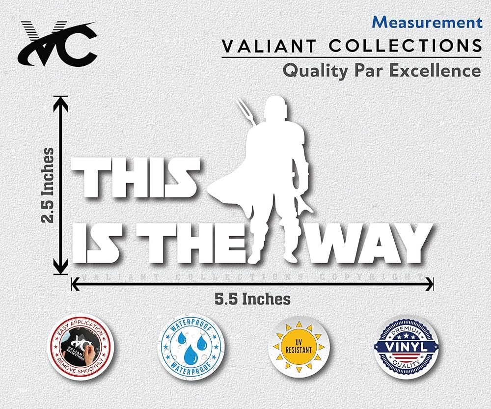 – This is The Way Sticker – Vinyl Mandalorian Sticker for Car, Truck, and Van – Indoor and Outdoor Use for Wall – Long Lasting Waterproof Decal for Laptop MacBook – VC 361 (White)