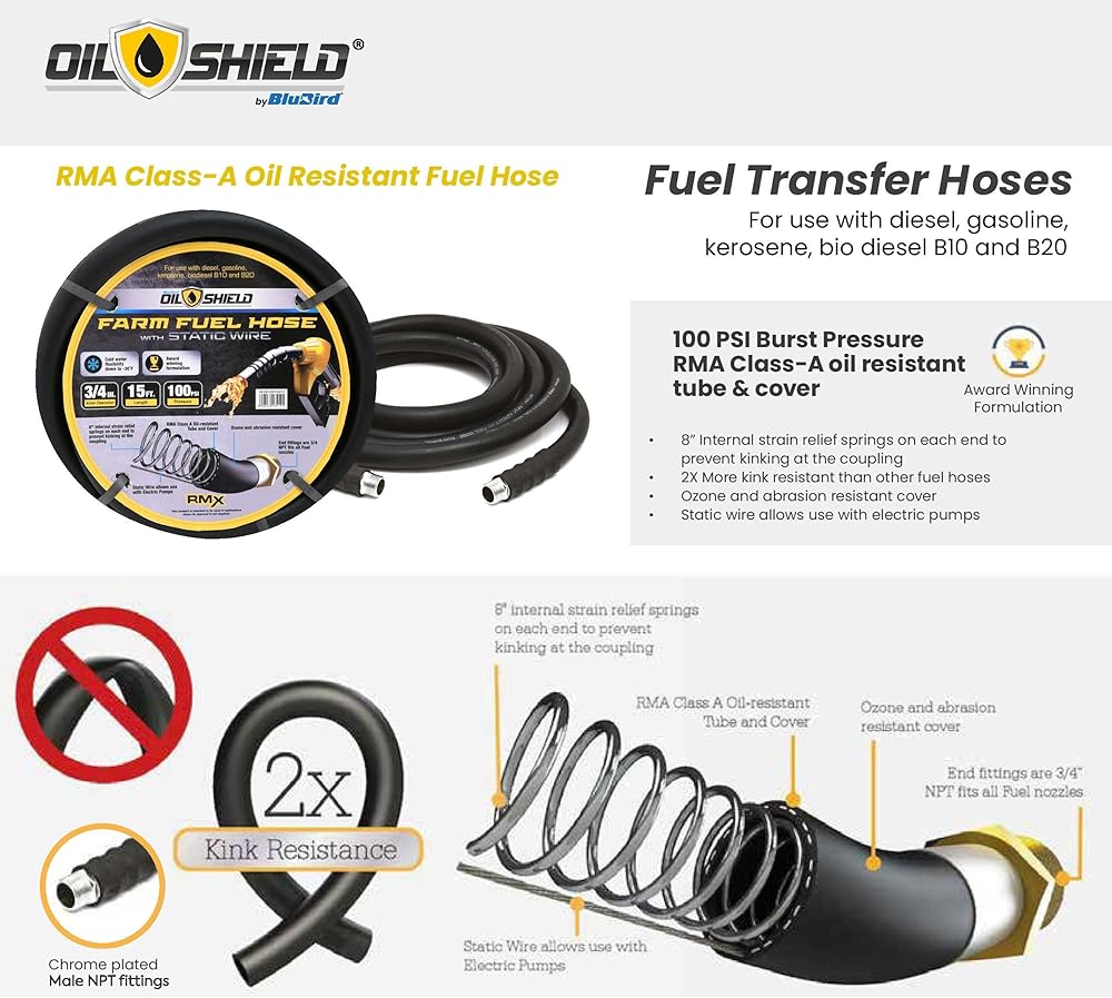 OIL SHIELD 1" x 25 ft Rubber Farm Fuel Transfer Hose with Static Wire - 2x Kink Resistance, Flexible to -30°F, Oil & Ozone Resistant, 100 PSI, Compatible with Electric Pumps in Kuwait OIL SHIELD 1" x 25 ft Rubber Farm Fuel Transfer Hose with Static Wire - 2x Kink Resistance, Flexible to -30°F, Oil & Ozone Resistant, 100 PSI, Compatible with Electric Pumps in Kuwait OIL SHIELD 1" x 25 ft Rubber Farm Fuel Transfer Hose with Static Wire - 2x Kink Resistance, Flexible to -30°F, Oil & Ozone Resistant, 100 PSI, Compatible with Electric Pumps in Kuwait OIL SHIELD 1" x 25 ft Rubber Farm Fuel Transfer Hose with Static Wire - 2x Kink Resistance, Flexible to -30°F, Oil & Ozone Resistant, 100 PSI, Compatible with Electric Pumps in Kuwait OIL SHIELD 1" x 25 ft Rubber Farm Fuel Transfer Hose with Static Wire - 2x Kink Resistance, Flexible to -30°F, Oil & Ozone Resistant, 100 PSI, Compatible with Electric Pumps in Kuwait OIL SHIELD 1" x 25 ft Rubber Farm Fuel Transfer Hose with Static Wire - 2x Kink Resistance, Flexible to -30°F, Oil & Ozone Resistant, 100 PSI, Compatible with Electric Pumps in Kuwait OIL SHIELD 1" x 25 ft Rubber Farm Fuel Transfer Hose with Static Wire - 2x Kink Resistance, Flexible to -30°F, Oil & Ozone Resistant, 100 PSI, Compatible with Electric Pumps in Kuwait