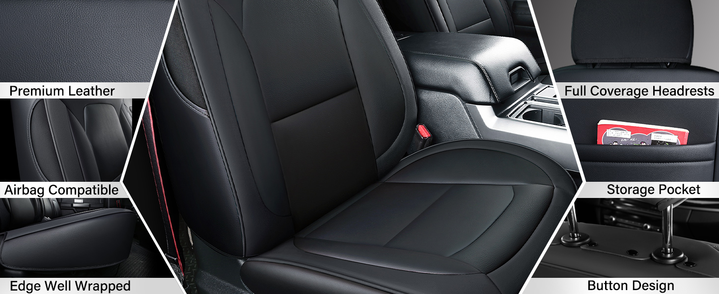 【Fullset Seat Covers】Each pack comes with 5 seat covers that include 2 for the front seat covers, 2 for the back seats covers and a console cover. Our truck seat covers for ford f150 retain original functionality are compatible with armrest covers, headrest covers, and airbag cutouts in seat covers for a complete set