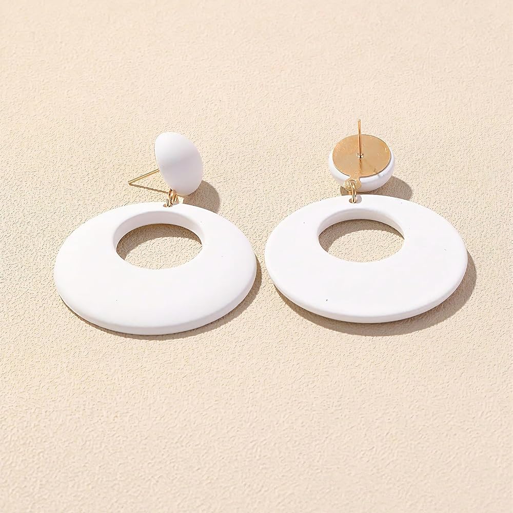 **Ideal Gift & Daily Essential** – These white resin circle hoop earrings are a thoughtful gift for women who appreciate minimalist, boho, and retro-inspired designs, including fashion enthusiasts. They also serve as a daily staple, ensuring you radiate charm in every scenario—from social gatherings to daily routines—making them a versatile addition to your jewelry collection.