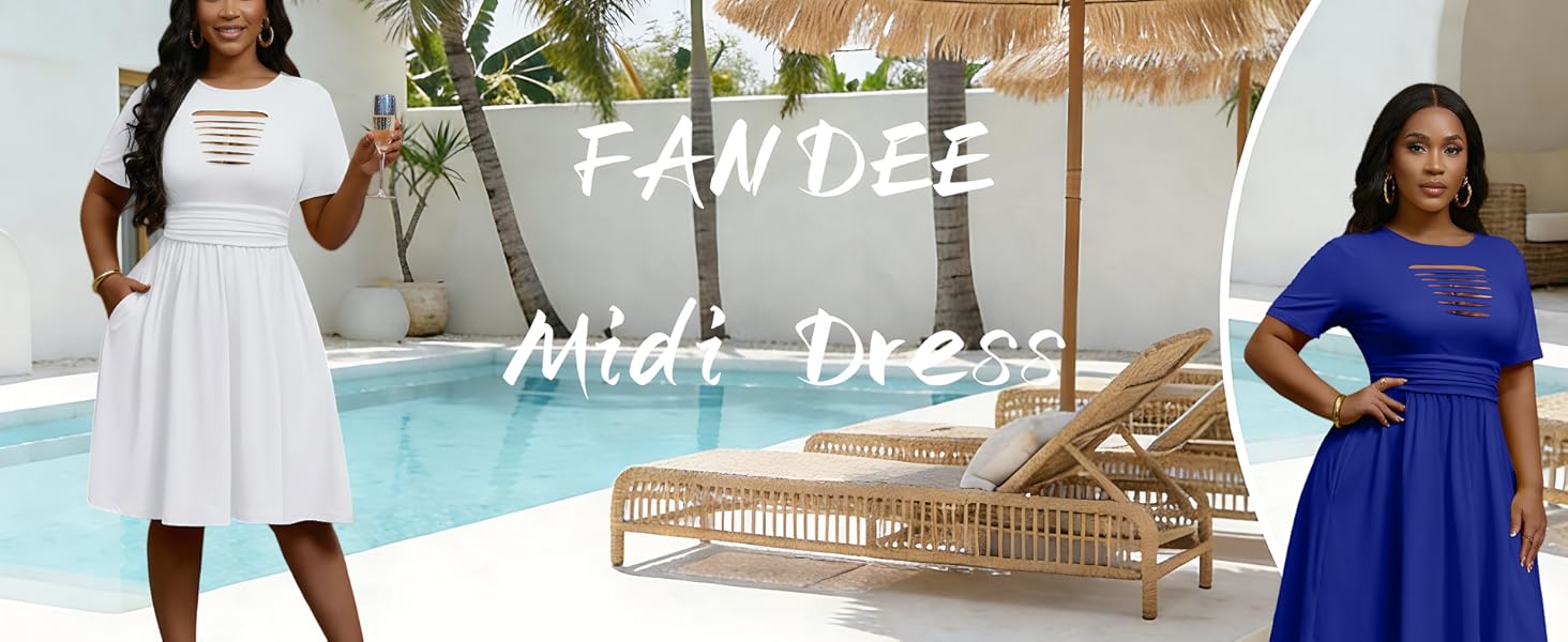 【ELEGANT DESIGN】This women's casual midi dress with pockets features a high empire waist that beautifully accentuates your curves. It can be paired with a variety of belts, making it ideal for weddings and many other occasions.
