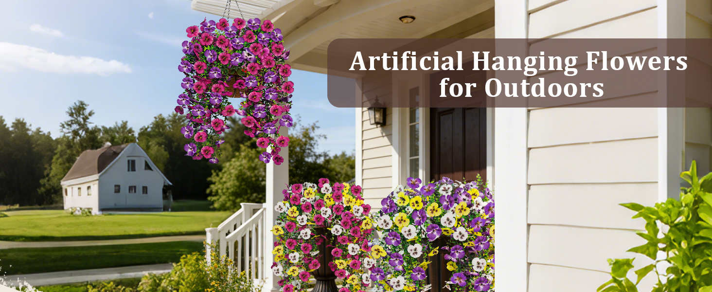 Zero-Maintenance Convenience: Ideal for busy lifestyles, these artificial hanging plant flowers for outdoors require no watering, pruning, or tedious upkeep. Simply unbox, arrange, and display—they effortlessly retain their lively, fresh appearance year-round, serving as a simple, long-lasting alternative to real flowers